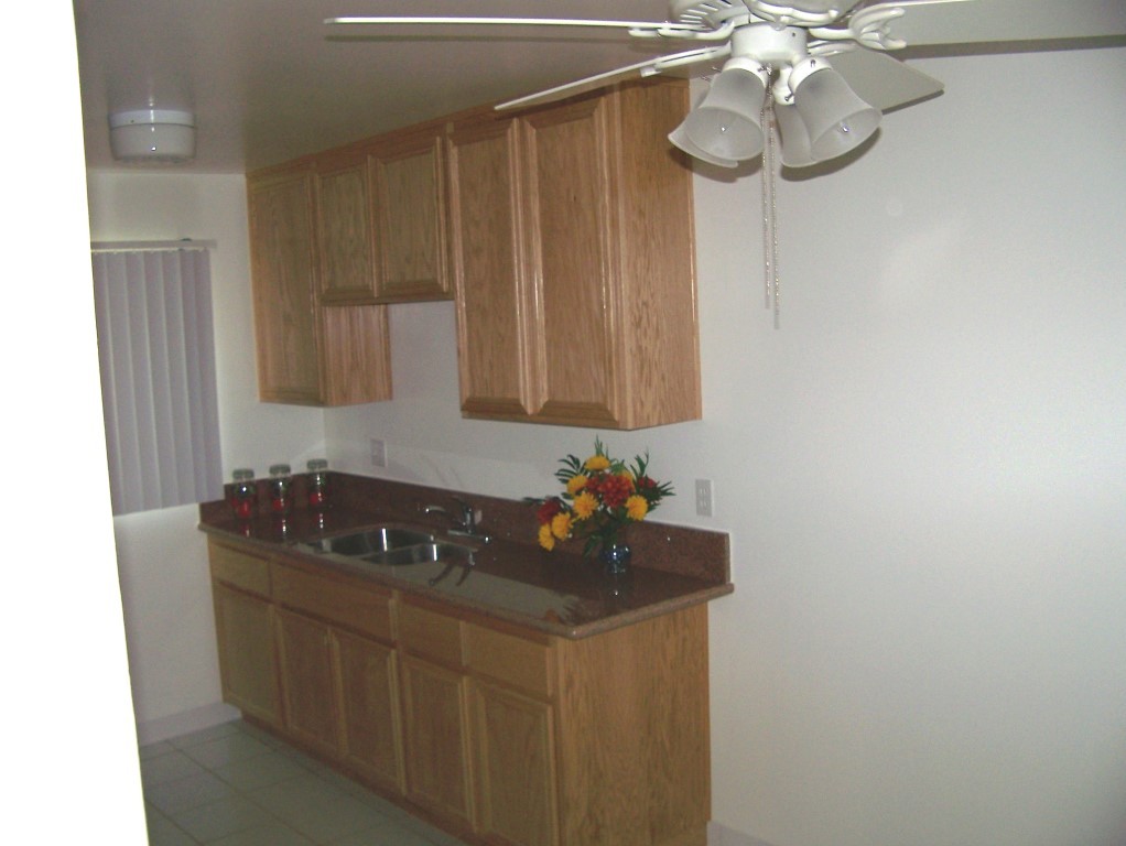 - Durable and attractive ceramic tile or faux wood flooring in kitchens and baths